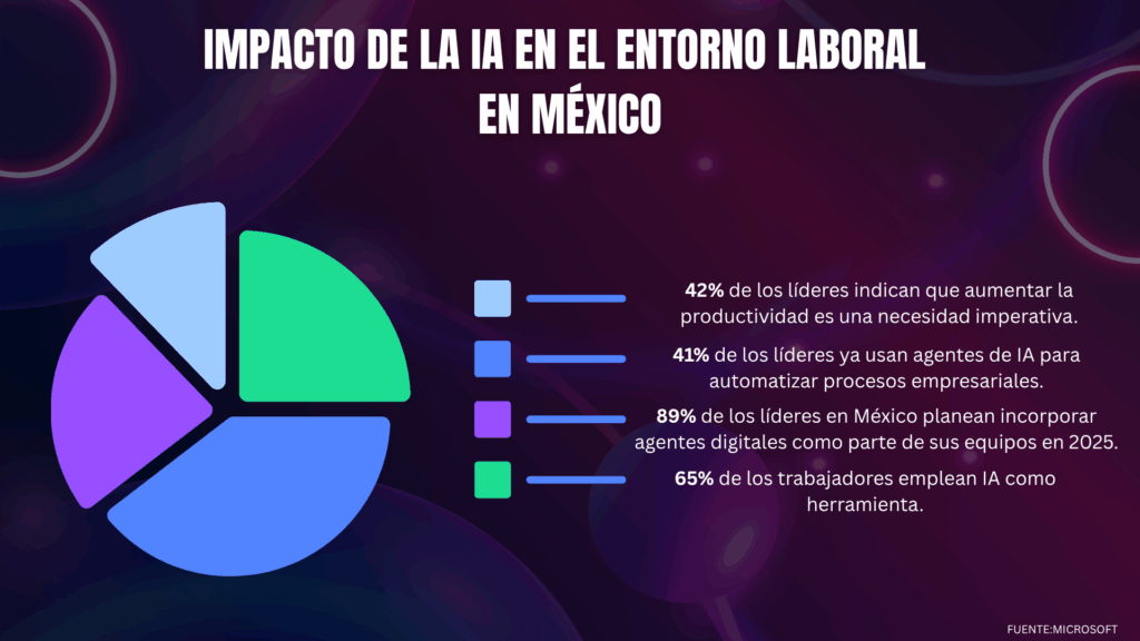 Los efectos de esta evolución se sienten especialmente en el ámbito empresarial. El Índice de Tendencias Laborales de Microsoft reveló que el 89 % de los líderes mexicanos planea incorporar agentes digitales a sus equipos de trabajo durante este año. Este giro marca el inicio de una nueva etapa organizativa, caracterizada por las llamadas “empresas frontera”, donde la inteligencia artificial deja de ser un simple instrumento de eficiencia y se convierte en el motor que impulsa nuevas formas de operar, producir y decidir. En este nuevo esquema, los trabajadores no son reemplazados, sino reubicados en funciones de supervisión, diseño y toma de decisiones estratégicas.