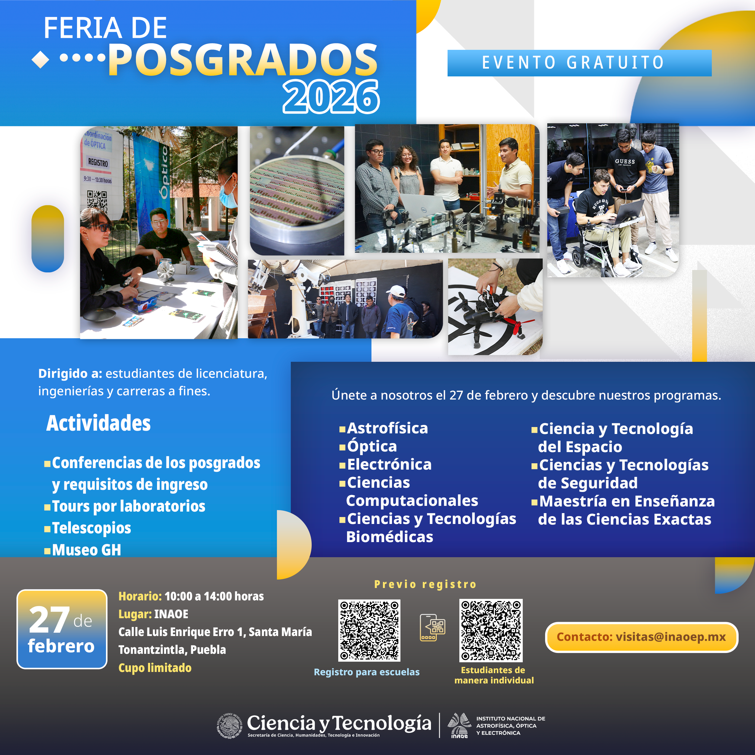 Para mayor información escribir al correo visitas@inaoep.mx