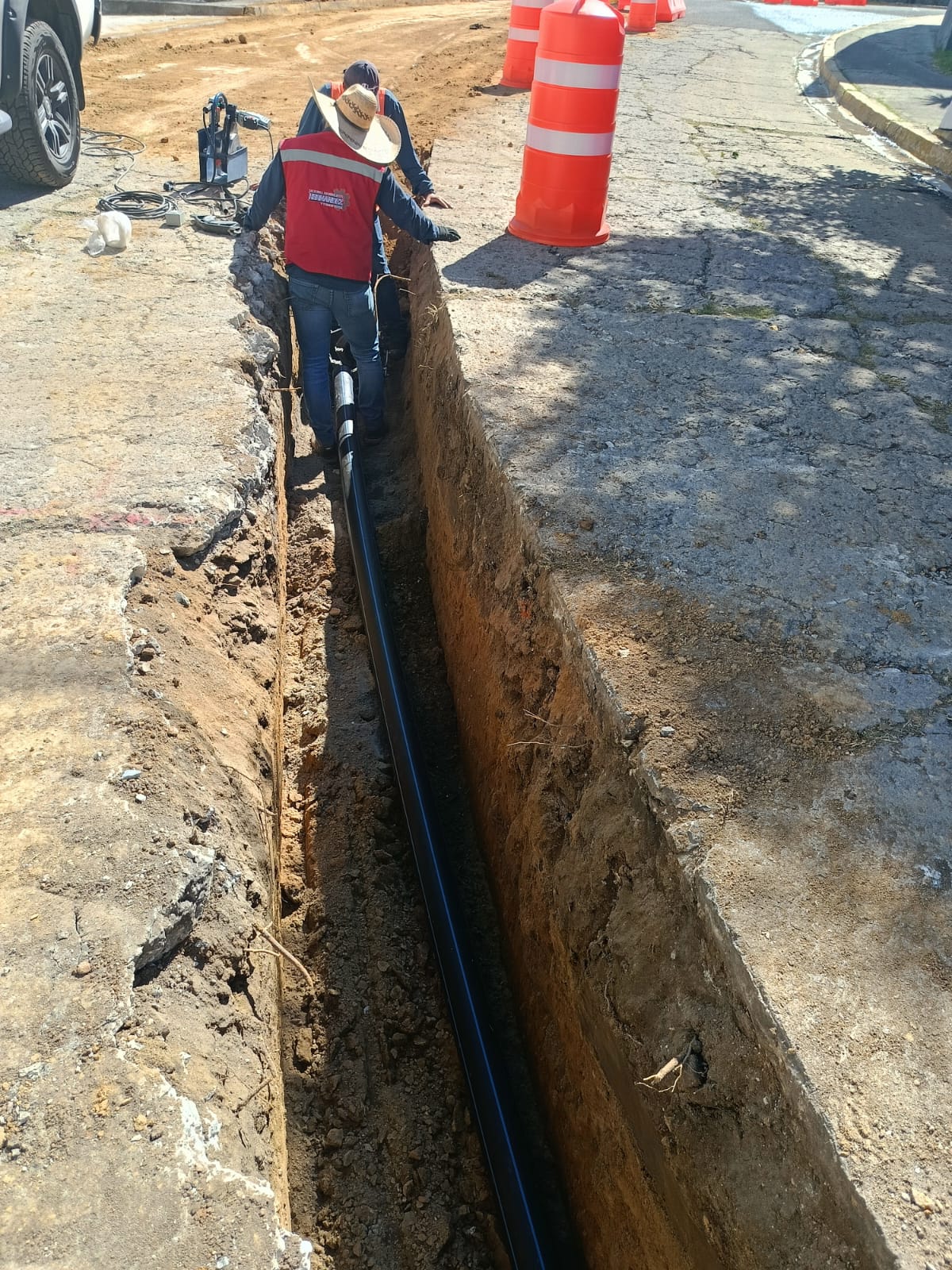 Los trabajos se realizan con zanjas a cielo abierto para instalar las nuevas tuberías y la sustitución de la red se realiza por el método Cracking que consiste en cambiar la tubería existente sin la apertura de zanjas para reemplazarla de forma subterránea, utilizando las antiguas tuberías como guía para la nueva instalación, abriendo sólo algunas ventanas con el fin de evitar en lo posible interrumpir el tránsito vehicular.