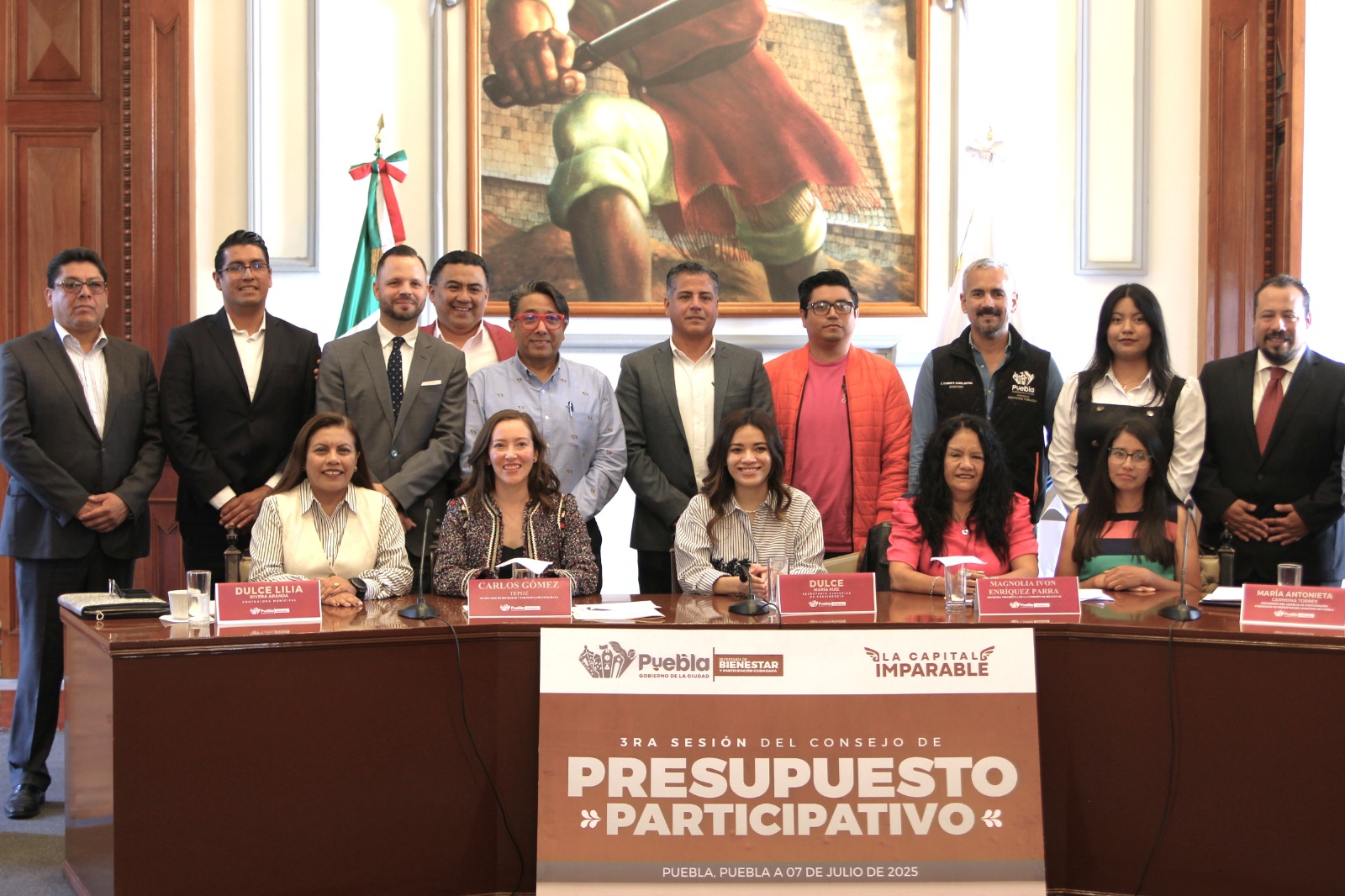 La sesión fue encabezada por Dulce María Ruiz Ramírez, secretaria ejecutiva de Presidencia, en representación del alcalde Pepe Chedraui Budib, y la acompañaron en el presídium Magnolia Ivon Enríquez Parra, regidora presidenta de la Comisión de Bienestar; Dulce Lilia Rivera Aranda, contralora municipal y María Antonieta Carmona Torres, presidenta del Consejo de Participación Ciudadana de Bienestar del Municipio de Puebla.