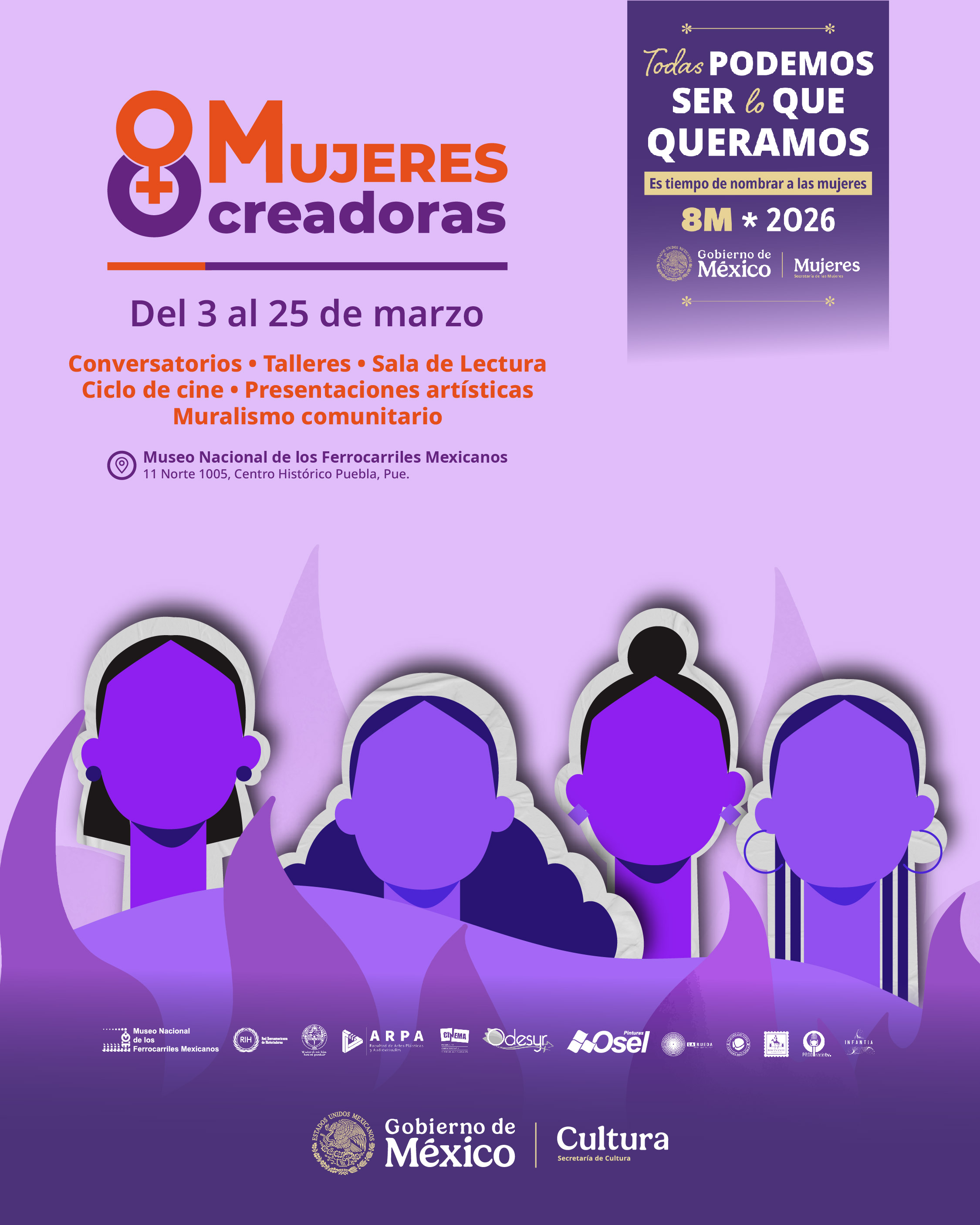 La Secretaría de Cultura del Gobierno de México, a través del Museo Nacional de los Ferrocarriles Mexicanos (MNFM), invita a participar en las actividades conmemorativas del Día Internacional de la Mujer 8M.