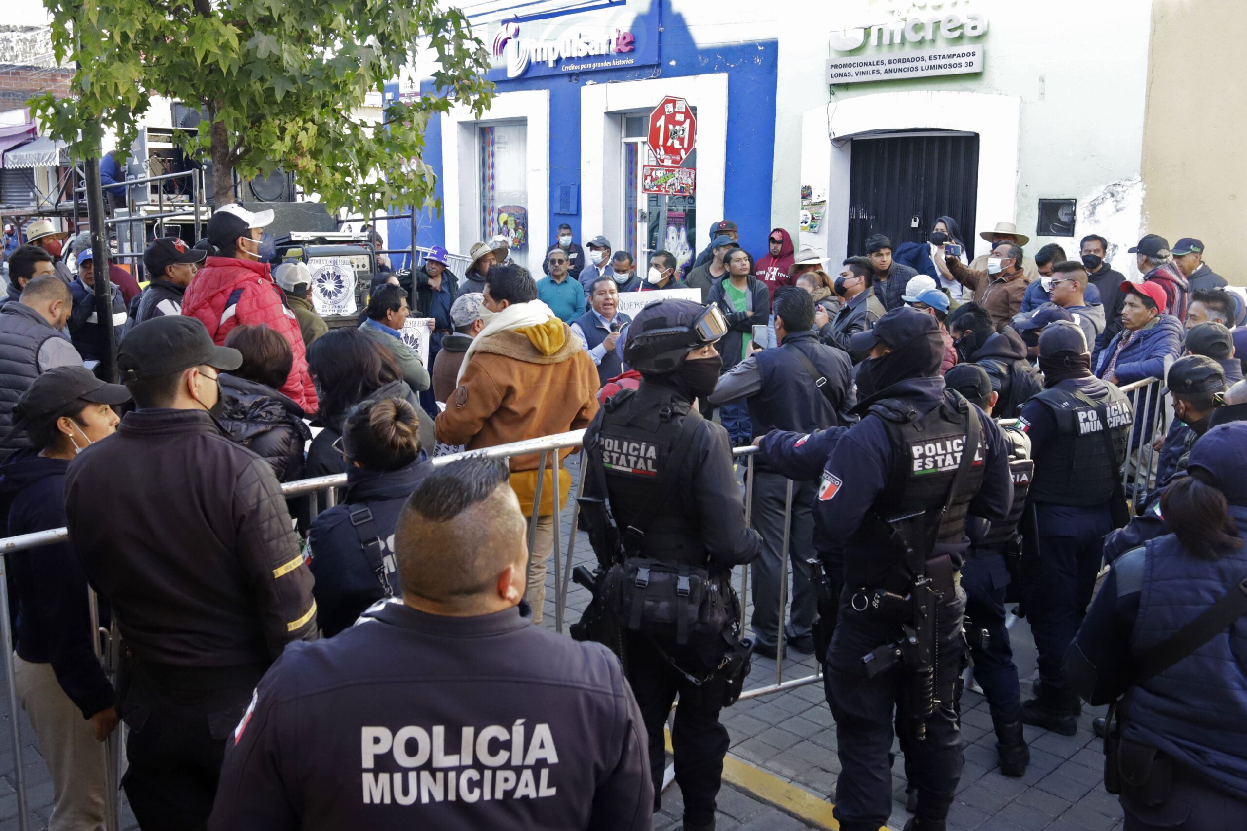 La tensión se notó en el ambiente desde temprana hora. Vallas metálicas y policías fueron desplegados en calles aledañas al lugar donde se llevó el evento exigido por los regidores para que la alcaldesa rindiera cuentas a los cholultecas.
