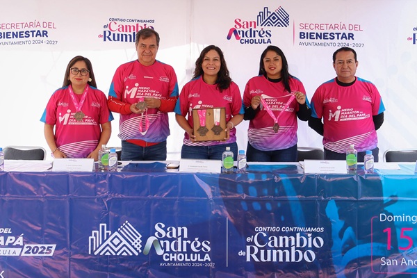 Con el propósito de integrar a toda la población del municipio a la práctica del deporte y la convivencia sana, la presidenta Lupita Cuautle Torres encabezó la presentación de la playera y la medalla del Medio Maratón del Día del Papá, a celebrarse el próximo 15 de junio a partir de las 6:00 a.m.