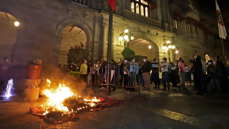 También cerraron a la circulación la avenida Juan de Palafox y Mendoza, frente a Palacio con una fogata que armaron con las cubiertas de las vallas instaladas alrededor del edificio,  que luego fue sofocada – con el retiro de los manifestantes – por elementos de bomberos.