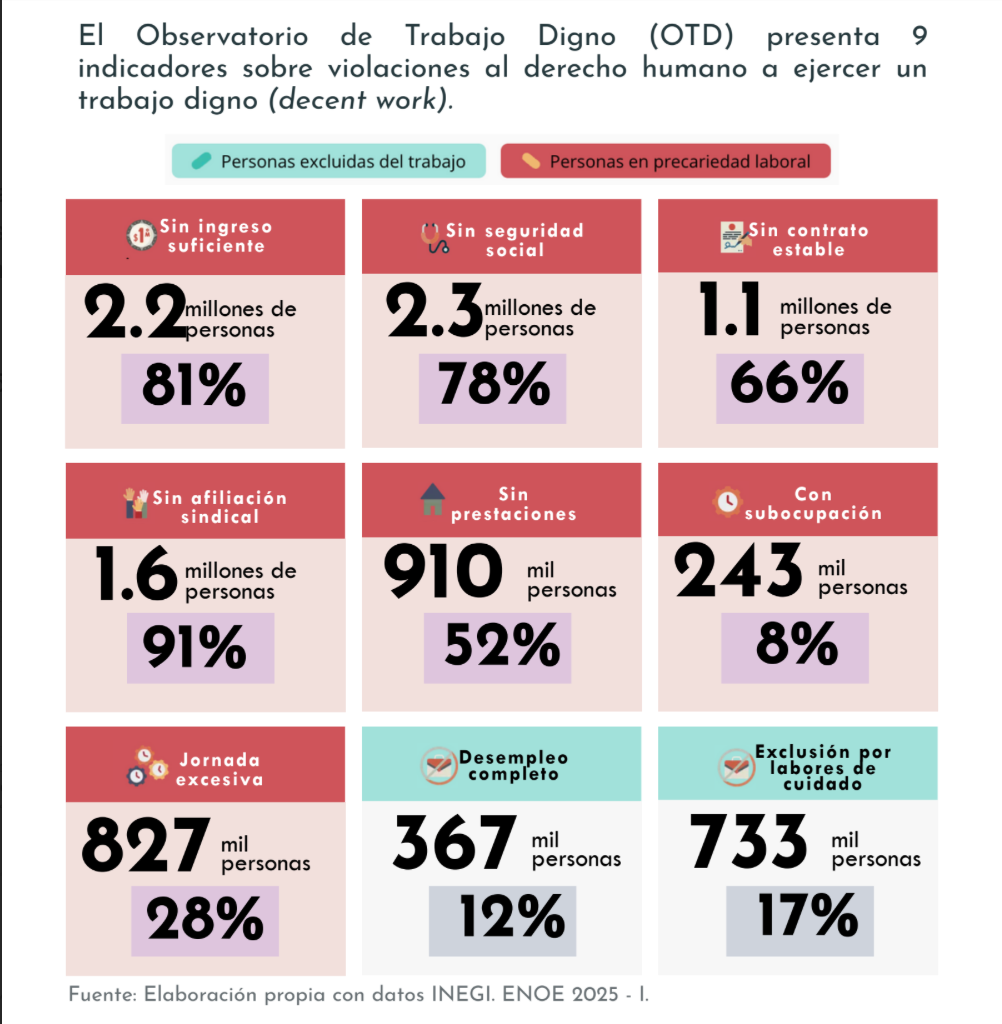 De esta manera se visibilizan las condiciones de trabajo que producen pobreza y desigualdad en México; los indicadores permiten ver con claridad que la raíz de la pobreza tiene que ver con la exclusión y la precariedad laborales, que además afectan en mayor medida a mujeres y jóvenes.