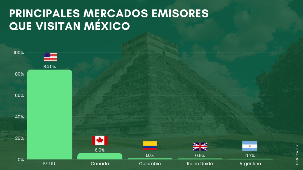 En cuanto a los mercados emisores, Estados Unidos sigue liderando con un 84% del total de visitantes, seguido por Canadá con 6%, Colombia con 1%, Reino Unido con 0.9% y Argentina con 0.7%, mientras que España ocupa la sexta posición. Ante esta concentración, las autoridades turísticas han señalado que uno de los grandes retos es diversificar la llegada de visitantes para depender menos del mercado estadounidense.