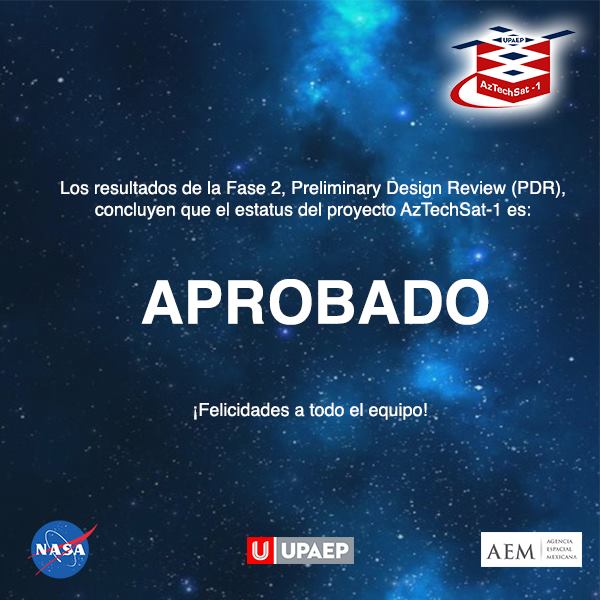Personal de la NASA aprobó el diseño preliminar de la construcción del AzTechSat-1 –Nanosatélite- que perfila el Decanato de Ingenierías de la UPAEP y que será puesto en órbita en la primavera del 2019, aseveró el astronauta José Hernández Moreno, investigador del Decanato de Ingenierías de esta casa de estudios.
