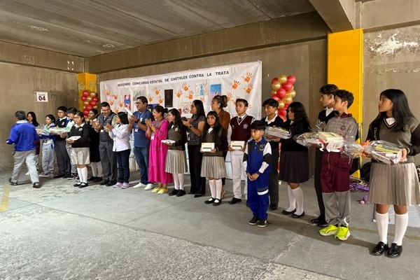 El certamen estuvo dirigido a estudiantes de quinto y sexto grado de primaria, así como a alumnos de secundaria, quienes elaboraron carteles bajo el tema: “Infancias contra la trata de personas. ¿A qué debemos poner atención para evitar ser víctimas?”.