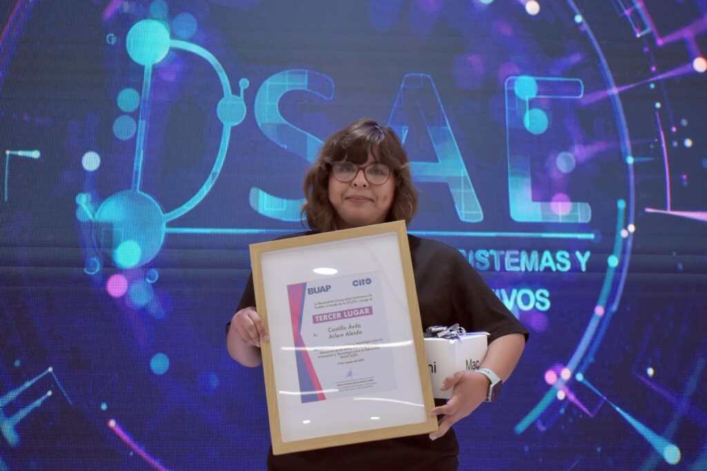 Asimismo, como parte de las actividades, se otorgó el Premio a la Innovación y Tecnología para la Educación BUAP 2025. El primer lugar fue para el profesor Javier Díaz Sánchez, quien presentó el trabajo “Emociones a través de la robótica”.