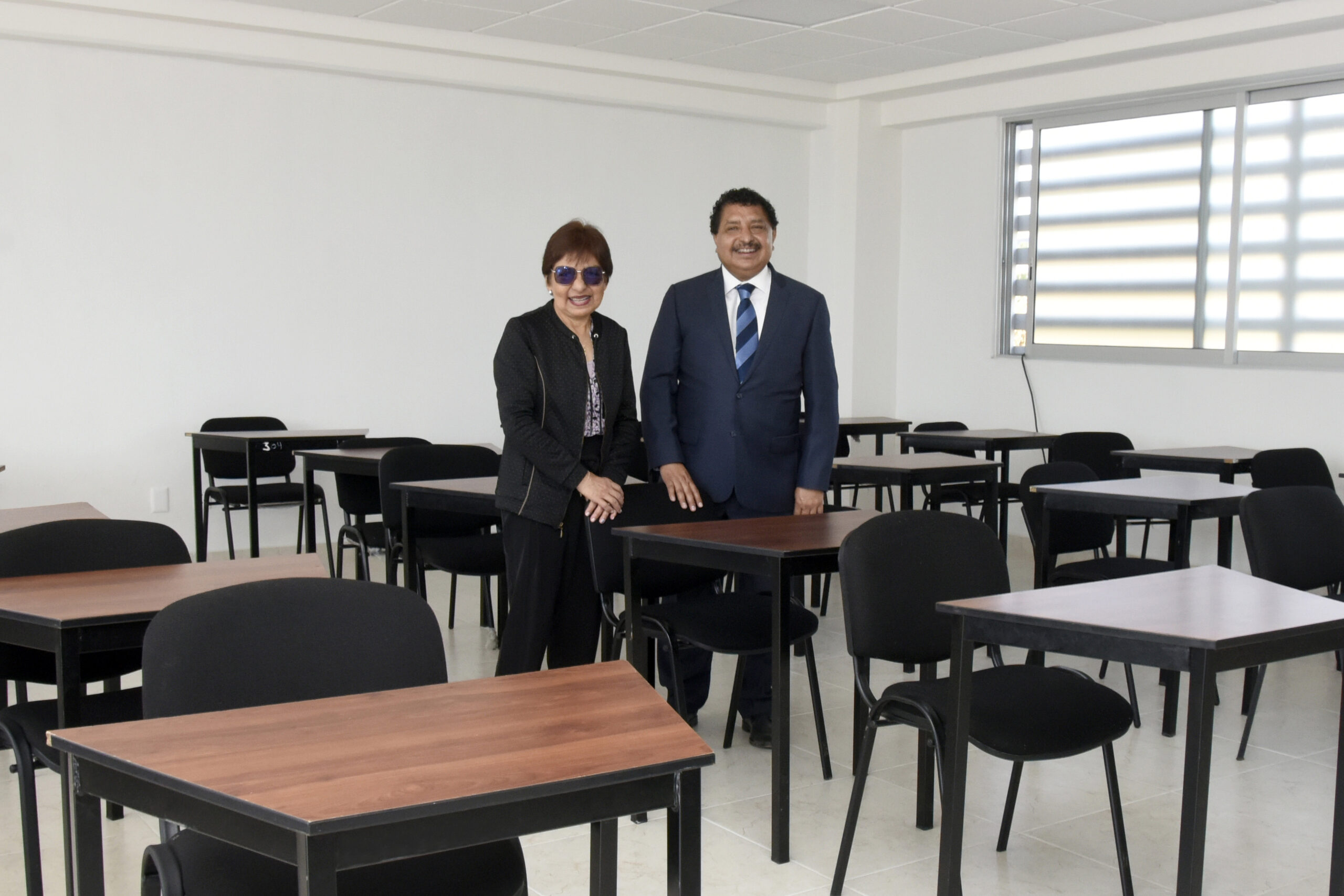 Previo al último informe rendido por Gabriel Pérez Galmiche, la Rectora María Lilia Cedillo entregó el avance de lo que será un nuevo edificio, hasta hoy concluido en su planta baja, donde se ubican un aula, una sala de maestros, la recepción, una sala de juntas y un cubículo para consultorio médico.