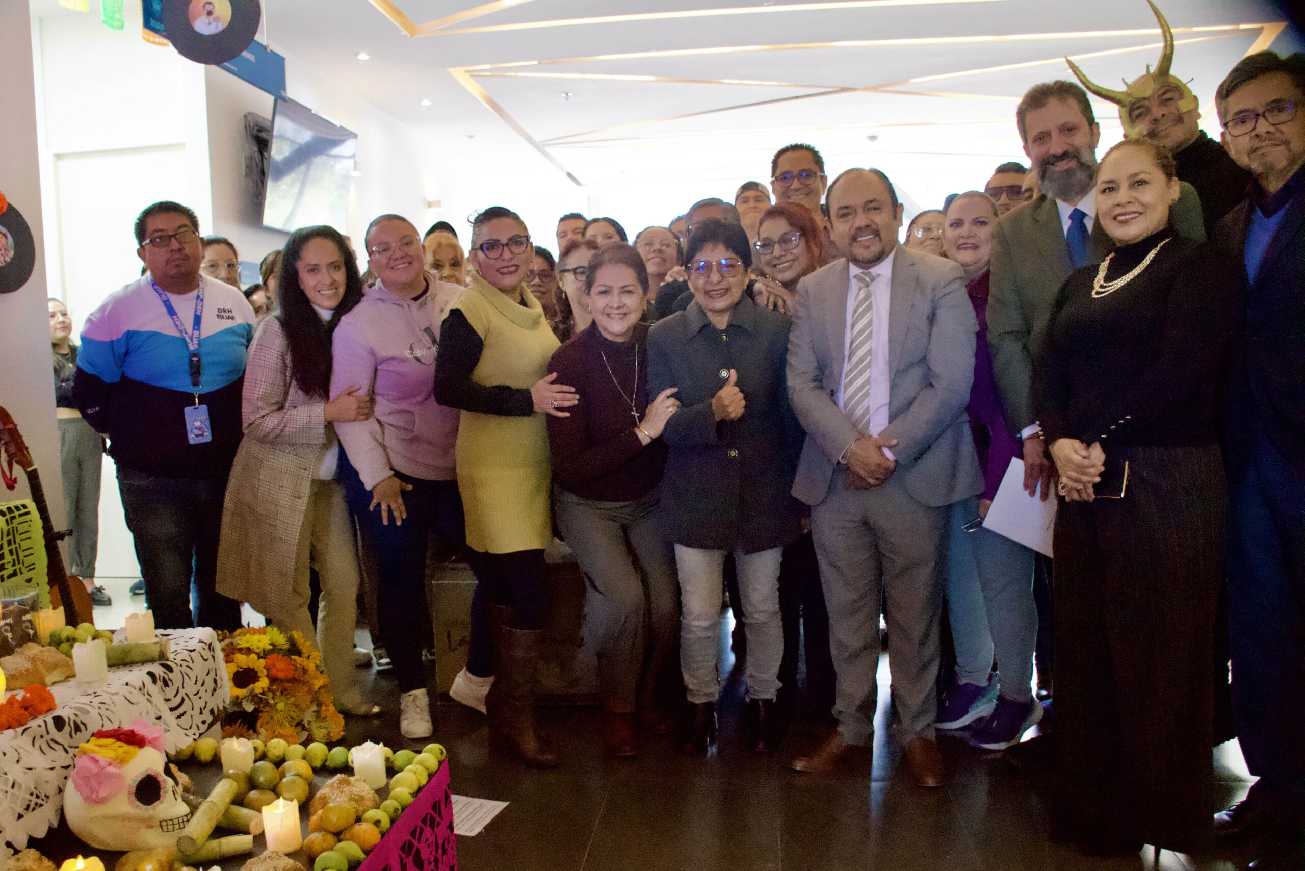 En la Torre de Gestión Académica y Servicios Administrativos también montaron ofrendas llenas de color, flores de cempasúchil, fruta de temporada, alimentos y bebidas, calaveritas de azúcar, figuras de papel mache, luces y todo lo requerido para honrar a familiares, mascotas, personal que “se adelantó”, o bien, en honor a personajes destacados como la astrónoma y divulgadora Julieta Fierro; Juan Gabriel, el divo de Juárez; Emma Telmo, primera mujer locutora de radio en México; Bertha Yeverino, pionera de la radio en Puebla; y Guglielmo Marconi, genio de la comunicación moderna.