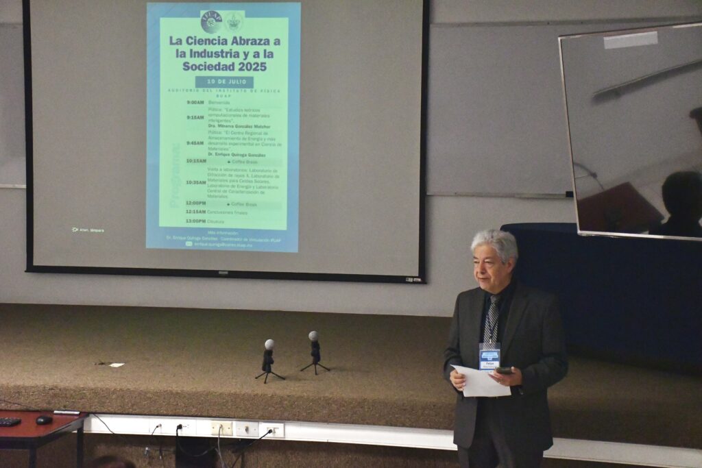 Con el propósito de difundir el trabajo científico y de investigación que desarrolla el Instituto de Física “Luis Rivera Terrazas” (IFUAP), específicamente en el área de Ciencia de Materiales, el doctor Enrique Quiroga González del Laboratorio de Energía, organizó el encuentro “La ciencia abraza a la industria y a la sociedad”, en el que se propuso la creación de un Centro Regional de Almacenamiento de Energía en la BUAP.