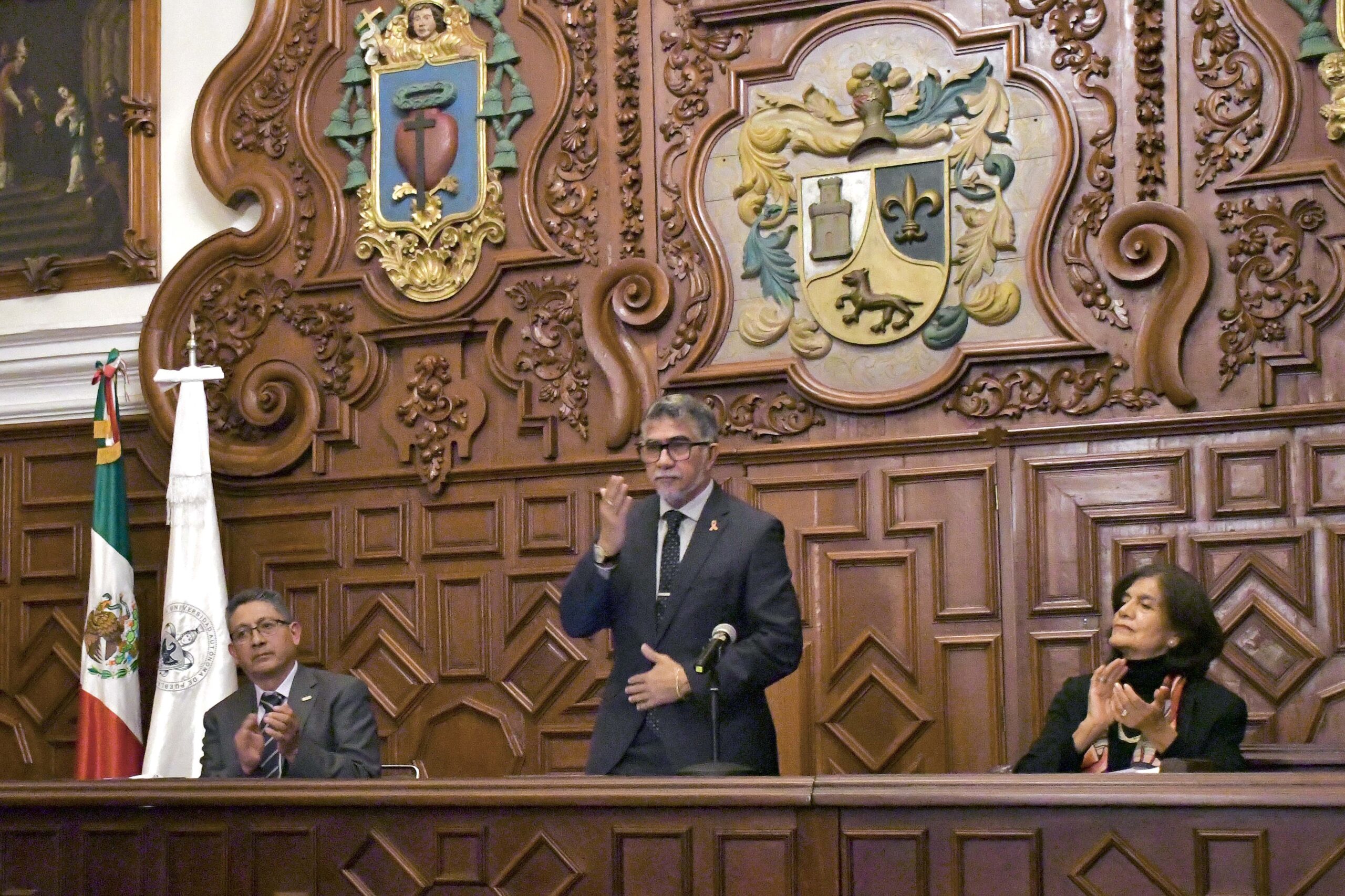 En este emblemático recinto del Edificio Carolino, el vicerrector de Investigación y Estudios de Posgrado, Ygnacio Martínez Laguna, -en representación de la Rectora Lilia Cedillo Ramírez-, el director de la Facultad de Ciencias Químicas, Henoc Flores Segura, y la señora María Jacobo, encabezaron este homenaje, donde rindieron homenaje a una extraordinaria persona y científico notable, que siempre creyó, con convicción, que la ciencia puede y debe mejorar la vida de las personas.