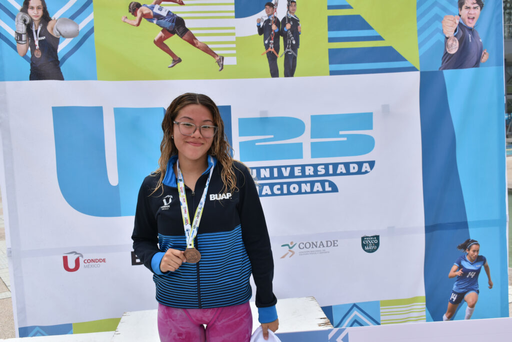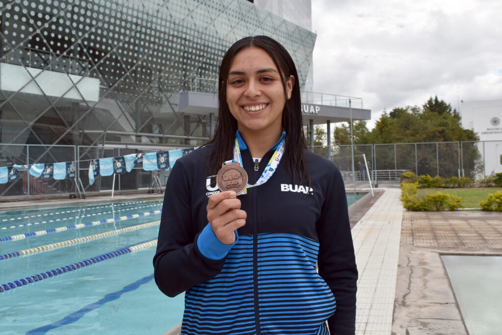 En natación -disciplina en la cual compite por vez primera la BUAP- se obtuvieron cinco preseas más: dos de plata y tres de bronce. En 800 metros libres, la estudiante de la Facultad de Medicina, Laura Castro Pérez, ganó el segundo lugar; en 800 metros libre, Joshua Emilio Flores Valenzuela, se llevó la medalla de bronce; y Jolette Apanco García, de la Facultad de Estomatología, en 100 metros mariposa la de bronce, su segunda medalla en lo que va de la Universiada Nacional –la primera fue plata en los 50 metros dorso.