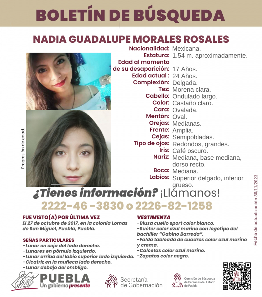 En un comunicado de la institución, se explicó que el Primer Tribunal Colegiado en Materia Penal en Puebla resolverá el amparo directo 142/2025 en el caso de Nadia Guadalupe Morales Rosales, quien desapareció en octubre de 2017 a los 17 años tras abordar el transporte público para dirigirse a su escuela. En 2025, y tras un largo proceso judicial, la familia logró que en una apelación se estableciera la responsabilidad penal por el delito de desaparición cometida por particulares; esto después de una decisión de primera instancia que había absuelto al acusado.