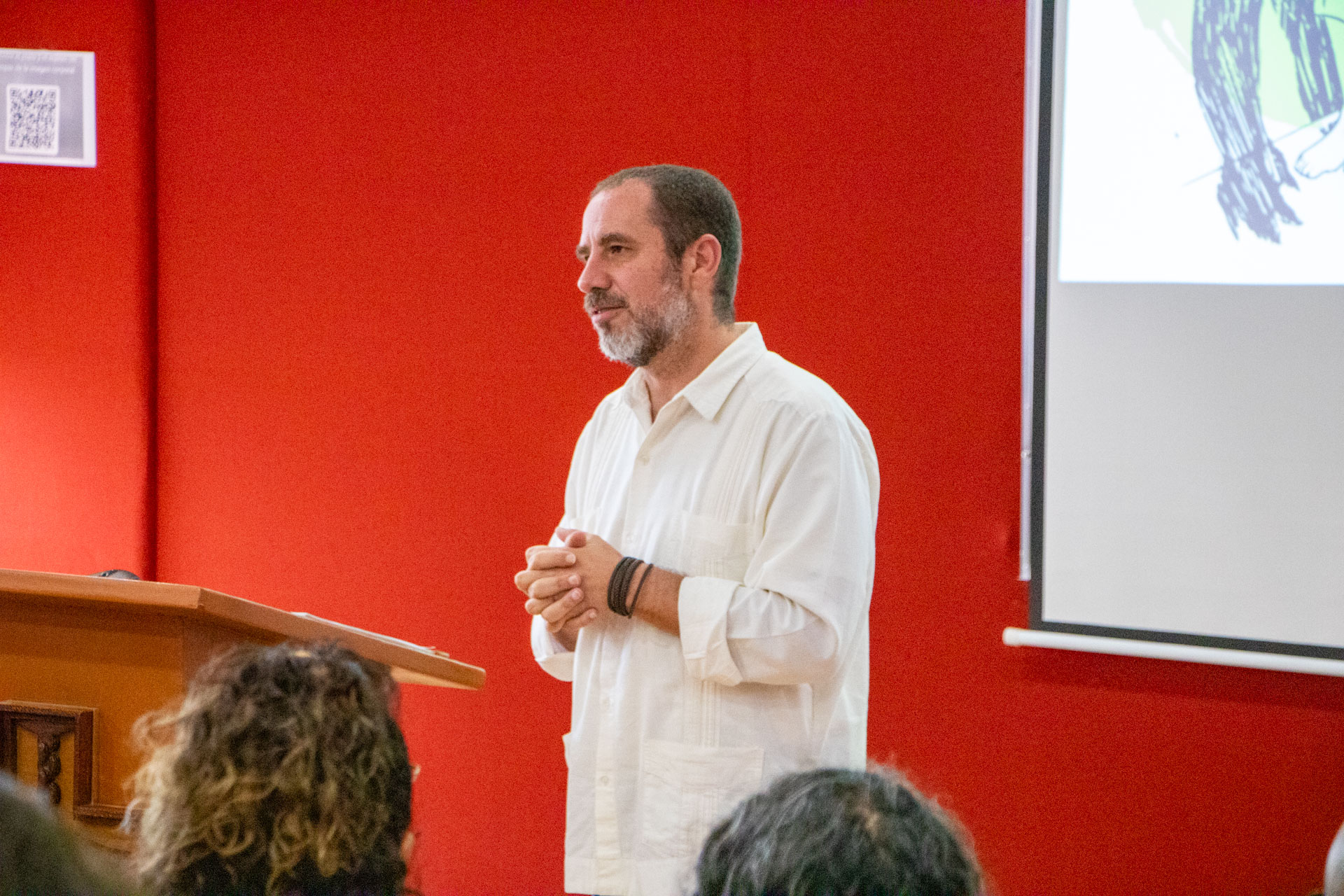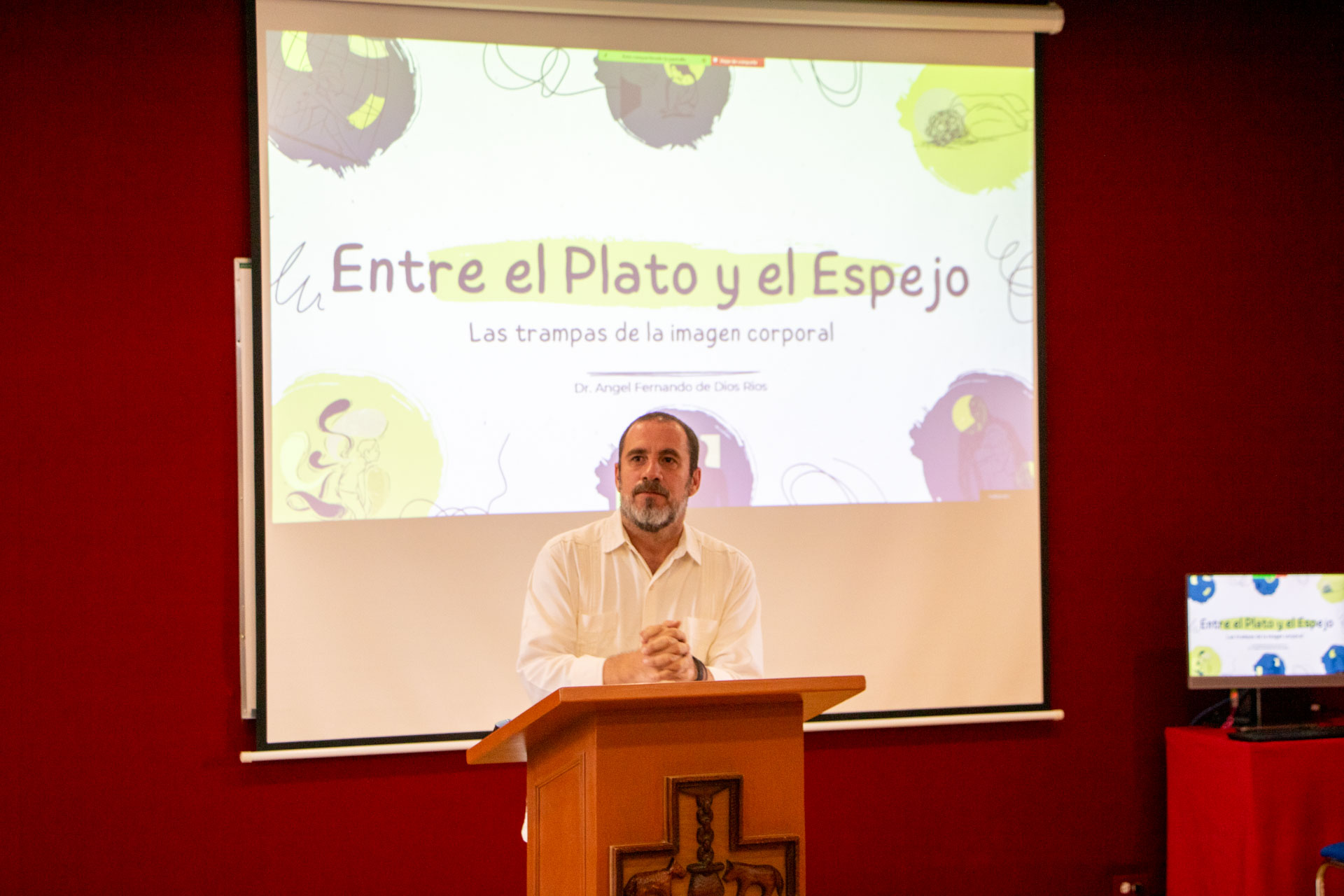 El doctor en Sociología y especialista en terapia corporal, Ángel Fernando de Dios Ríos, presentó su conferencia “Entre el plato y el espejo” en la IBERO Puebla como una charla necesaria ante la rampante obsesión por la superficialidad corporal de los últimos años. Para el ponente, la revisión histórica y contextual de la estética permite comprender las narrativas deshumanizantes de la imagen corporal.