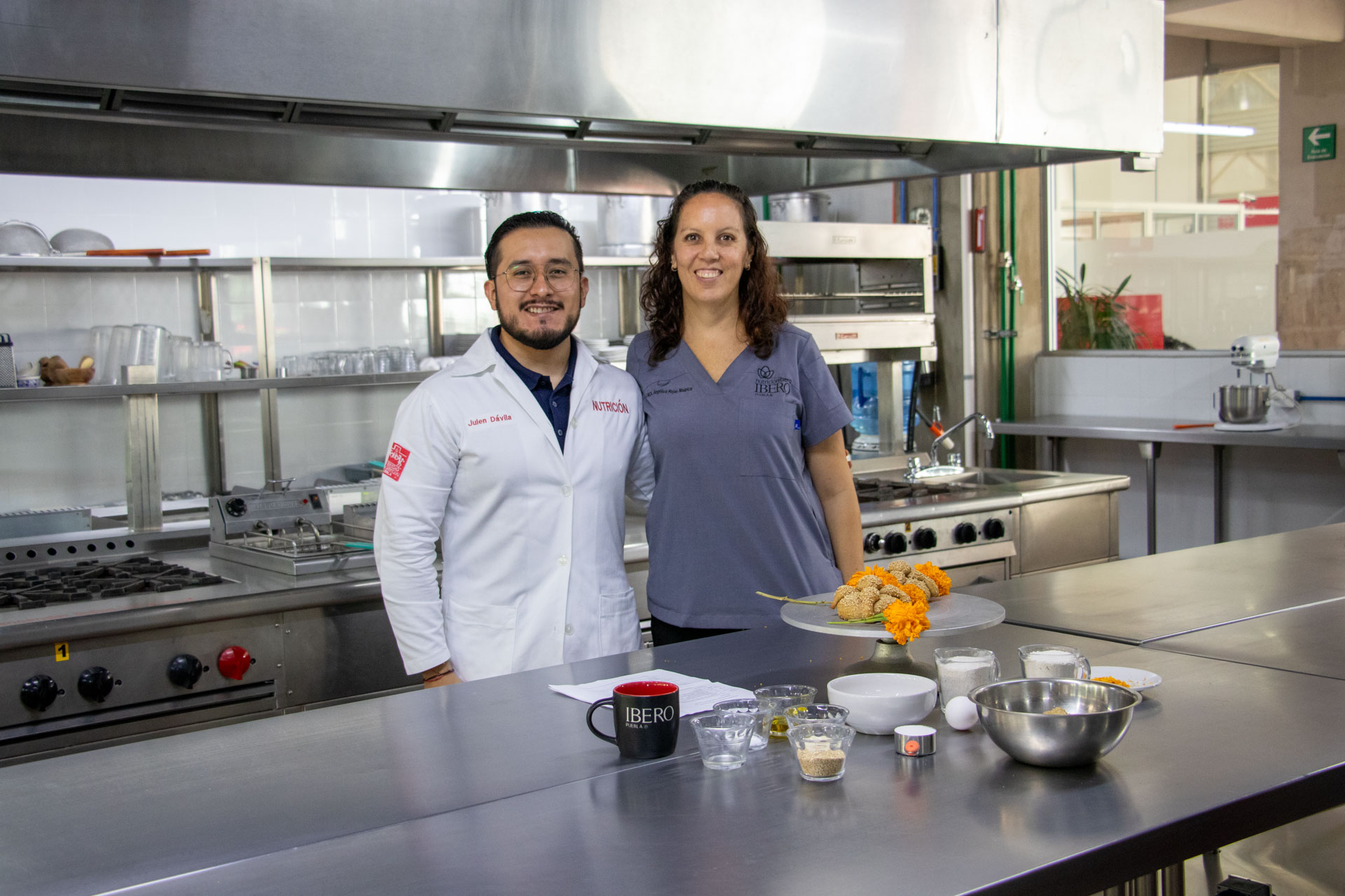 En el marco de las celebraciones del Día de Muertos, la Clínica de Nutrición María Eugenia Mena Sánchez de la IBERO Puebla elaboró una receta especial de hojaldras nutritivas, que fue presentada por la Lic. Angélica Rojas Malpica, asistente ejecutiva de la Clínica, y Alejandro Dávila Nájera, estudiante de la Licenciatura en Nutrición y Ciencia de los Alimentos.