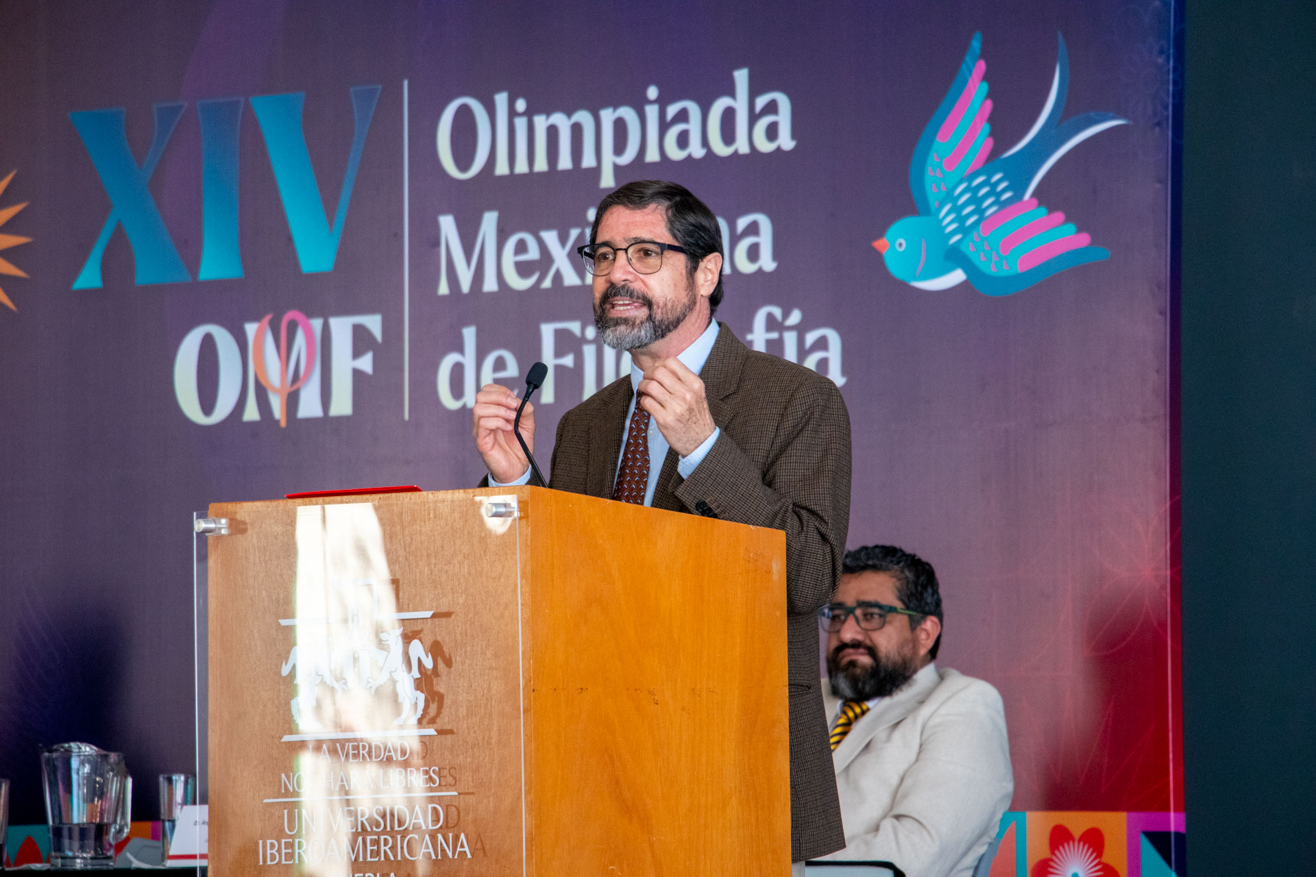 El delegado nacional de la Olimpiada Internacional de Filosofía en México, el Dr. Ángel Jiménez Bernardino, también dio la bienvenida a esta importante plataforma de conocimiento, reconociendo el talento que hay en México al ser uno de los 5 países americanos que participan en este certamen, entre más de 60 países europeos. Por ello, afirmó: “Quiero felicitar a todos los estudiantes que tuvieron el atrevimiento de ponerse a pensar, de buscar alternativas, de revivir la filosofía en todas las disciplinas”.
