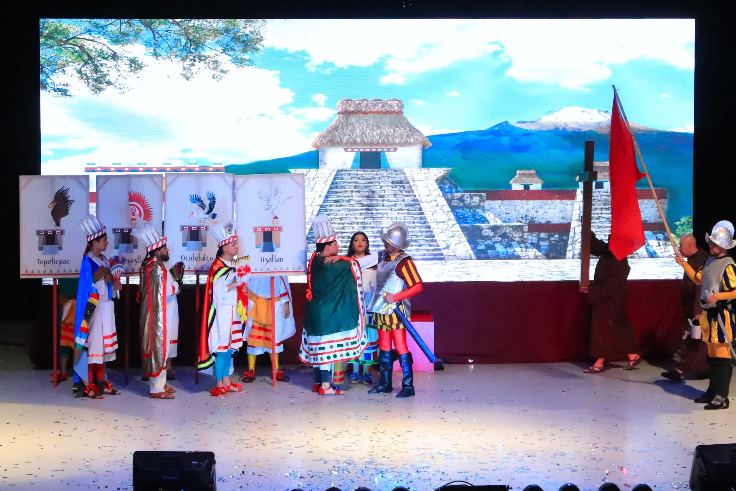Con los milenarios ritmos del teponaxtle, el sonido de las maracas y el eco de los palos de lluvia, el Grupo de Danza Folclórica de la Secretaría de Extensión y Difusión Cultural ofreció una interpretación vibrante que fusionó arte, tradición y memoria colectiva, como un homenaje al pasado y reflejo del orgullo que distingue a los tlaxcaltecas.