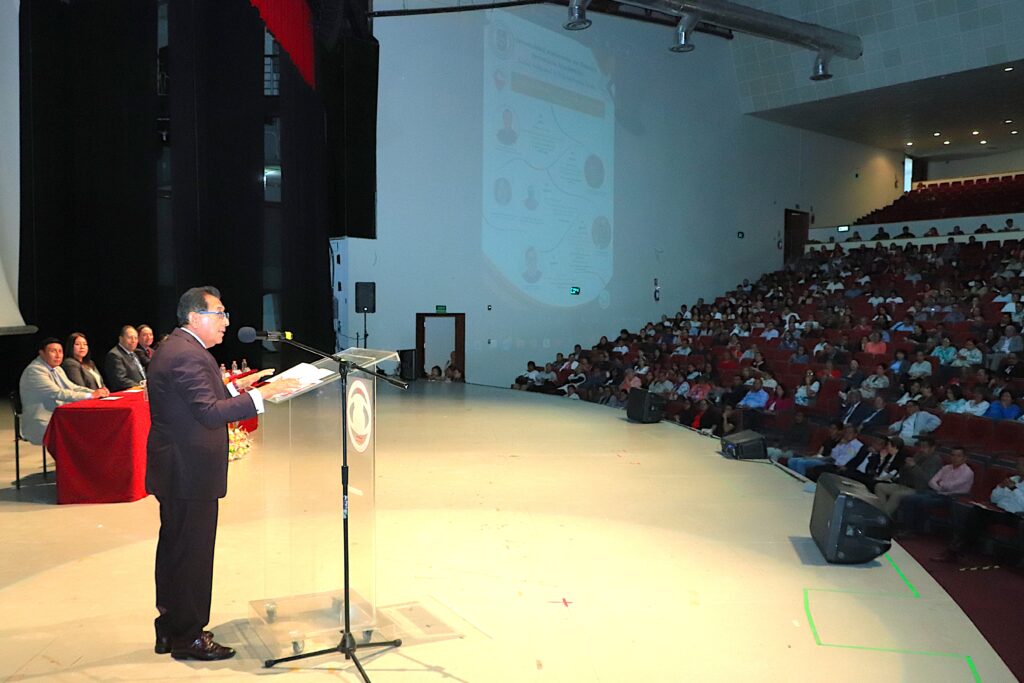Ante docentes de los 46 programas educativos reunidos en el Centro Cultural Universitario, el Doctor Ortiz reconoció el trabajo que han desplegado la Secretaría Académica, a cargo del Maestro Alejandro Palma Suárez, y la Unidad Institucional de Formación Docente por mantener una actividad constante de actualización del profesorado de esta máxima Casa de Estudios.