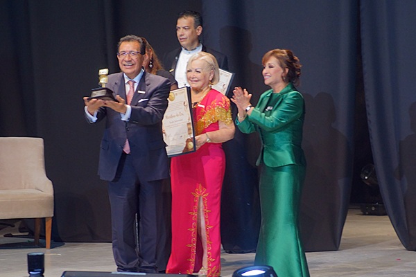La magna ceremonia que se realizó en el Centro Cultural Universitario de la UATx, fue encabezada por la Licenciada Lorena Cuéllar Cisneros, Gobernadora de Tlaxcala, y por la Maestra Rosalía Buaún Sánchez, Presidenta de la Asociación Nacional de Locutores de México y de la Federación Hispanoamericana de Locutores.
