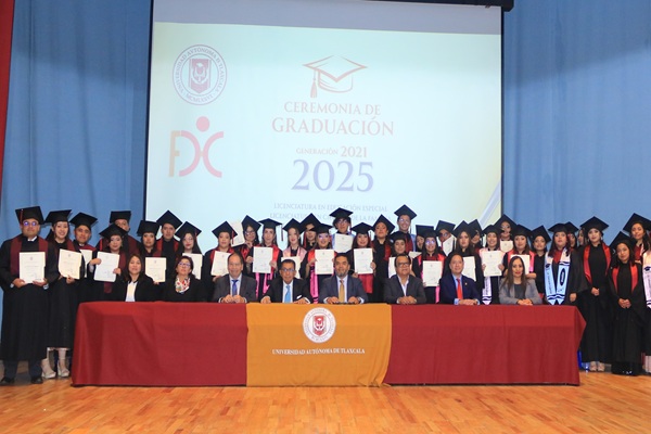La Facultad de Ciencias para el Desarrollo Humano de la Universidad Autónoma de Tlaxcala (FCDH- UATx) se ha posicionado en el país como la “facultad de la inclusión” porque es uno de los caracteres del homo universitatis, afirmó el Doctor Serafín Ortiz Ortiz, Rector de esta máxima Casa de Estudios, al presidir la ceremonia de graduación de 35 egresados de las licenciaturas en Educación Especial, Ciencias de la Familia y Pedagogía Gerontológica, generación 2021-2025.