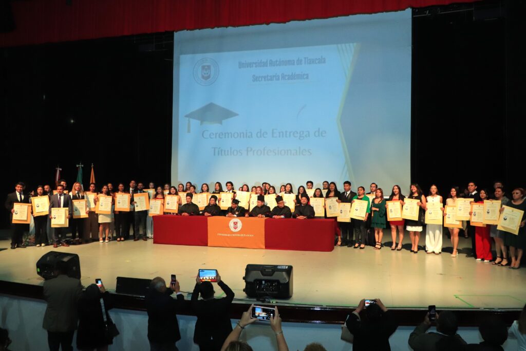 La Universidad Autónoma de Tlaxcala (UATx) entrega a su sociedad a 957 profesionales de licenciatura y posgrado para transformar e impactar en mejores condiciones de vida a través de la aplicación del conocimiento científico, tecnológico y humanista, cumple con su misión de formar a profesionales competentes, externó el Rector, Doctor Serafín Ortiz Ortiz, al presidir la ceremonia de entrega de títulos en el Centro Cultural Universitario.