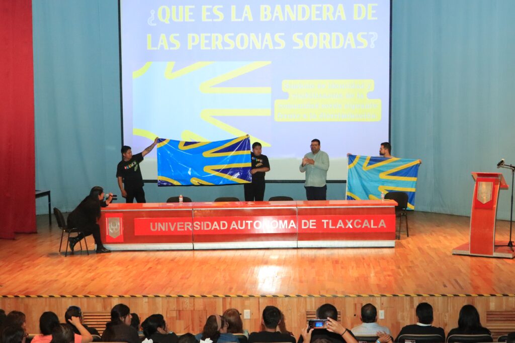 Dicha jornada inició con la interpretación del Himno Nacional Mexicano a cargo de los alumnos de tercer año de la Escuela Primaria Paz y Progreso del municipio de Apizaco, en Lengua de Señas Mexicana. Además, el Licenciado José Edgar Luna Rodríguez, Presidente de la Comisión de Pueblos Sordos del Estado de Puebla, dictó la conferencia “La comunidad y cultura sorda: Derechos lingüísticos y leyes”. Subrayó que la comunidad sorda no solo es una categoría médica, sino un grupo que necesita acceso a la educación bilingüe y respeto a la identidad, pues se estima que en México existen más de 2.4 millones de personas sordas, quienes buscan un reconocimiento e inclusión en las actividades sociales y no estar sujetos a un esquema asistencialista.