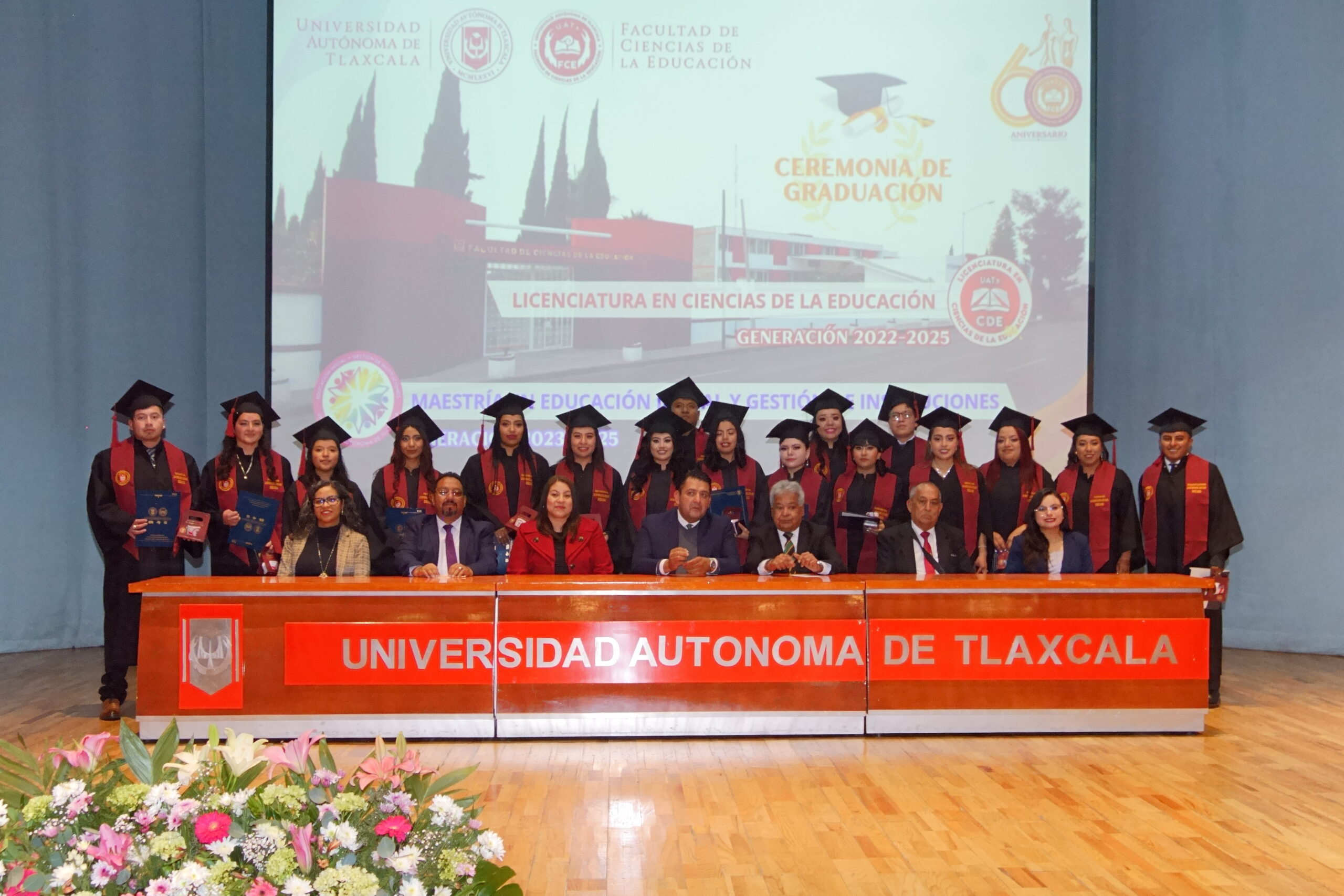 En solemne ceremonia celebrada en el Teatro Universitario, 59 egresados de la Licenciatura en Ciencias de la Educación, generación 2022-2025, y 13 de la Maestría en Educación Inicial y Gestión de Instituciones, generación 2023-2025, de la Facultad de Ciencias de la Educación de la Universidad Autónoma de Tlaxcala (FCE-UATx) recibieron la constancia que avala la conclusión de su formación.