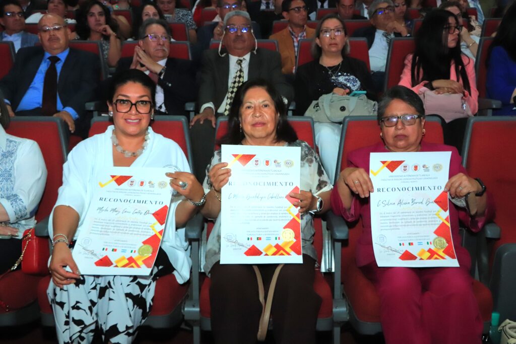 En este marco se entregaron reconocimientos a docentes y personal administrativo de la UATx por su destacada trayectoria y aportación al fortalecimiento de esta Facultad. Se otorgaron distinciones al Doctor Serafín Ortiz por su trayectoria y liderazgo universitario; a las ciudadanas Silvia Alicia Bernal Guevara y Guadalupe Caballero Muñoz por su gran trayectoria administrativa de más de 40 años; a los doctores Rolando Morales Cuéllar y Osvaldo Ramírez Ortiz y al Maestro David Altamirano por su destaca labor en la cátedra; y a la Maestra Maricruz Cortés Ornelas, Magistrada y expresidenta del Tribunal Superior de Justicia del Estado de Tlaxcala por su exitosa trayectoria como egresada de Derecho.