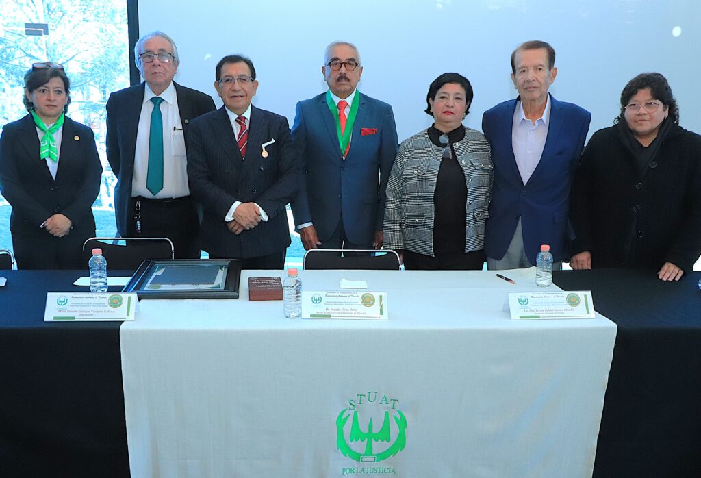 En este sentido homenaje también fueron partícipes los exrectores Contador Público Héctor Vázquez Galicia, Ingeniero Alfredo Vázquez Galia, Maestro Eugenio Romero Melgarejo, Maestro Sandino Leonel Lelis Sánchez y Químico René Grada Yautentzi, y los exlíderes del STUAT, los maestros Pedro Flores Vázquez, Luis Peña Corona, Lenin García Flores y Alejandro Palma Suárez, y la Doctora Alejandra Ramírez Ortiz, Delegada del Infonavit en Tlaxcala.