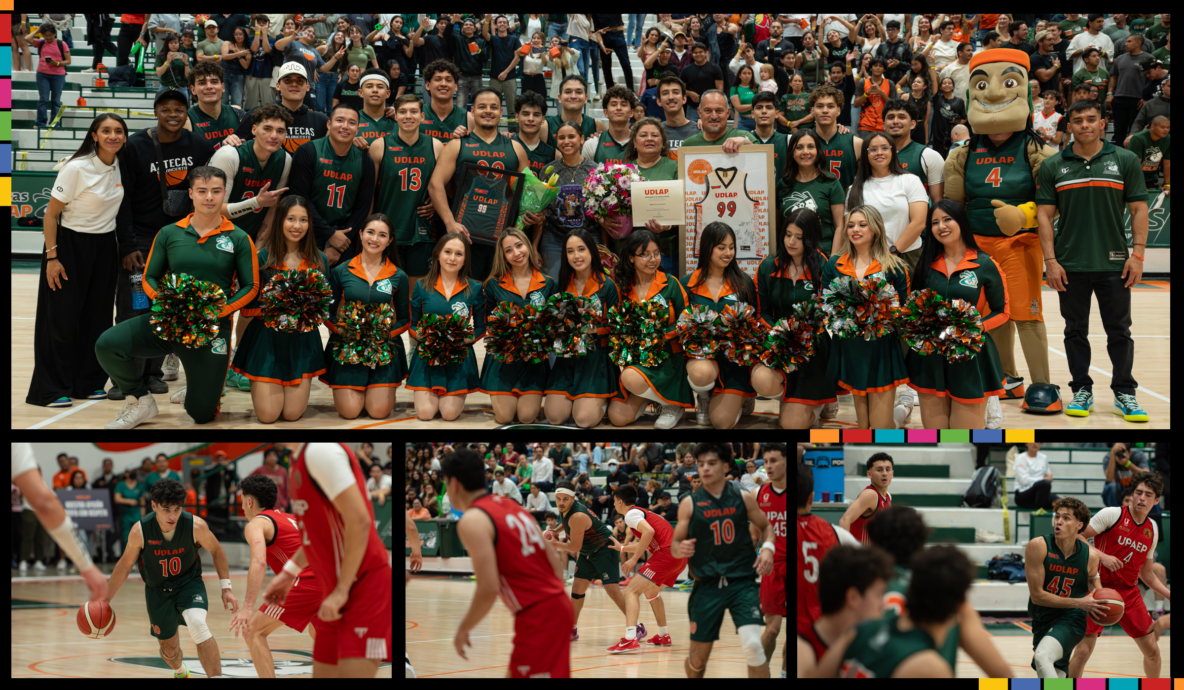 A partir de ello los locales apretaron la marca a la defensiva a fin de que el marcador se fuera acumulando. Ya en los últimos 2 minutos, los rojos estuvieron a una canasta para igualar a 58 pero Reggie González Díaz les negó la hazaña con un doblete y un tiro de castigo (61-56), después Marco Saenz Loaiza la metió de gancho (63-56) y Reggie puso el cerrojo final desde el lanzamiento de castigo para lograr el 64-59, marcador que regresa el Clásico universitario varonil a la Tribu verde y que se desarrolló en el marco de la despedida de Reggie González, capitán de los Aztecas de baloncesto, por el término de su elegibilidad.