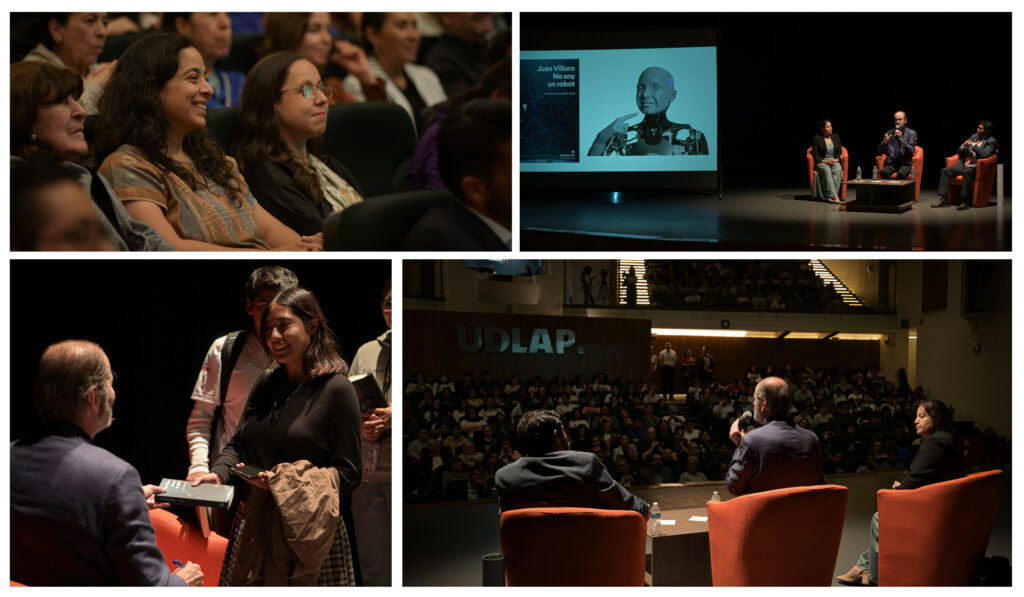 En el marco de los 85 años de la fundación de la UDLAP y 55 años de su campus en Puebla, y ante un lleno total del Auditorio Guillermo y Sofía Jenkins, el Dr. José Daniel Lozada Ramírez, vicerrector Académico de la Universidad de las Américas Puebla, destacó que este encuentro buscó ser más que un evento académico al convertirse en una conversación cercana con los estudiantes sobre el lugar de la lectura en la sociedad digital. Asimismo, subrayó que, aunque a menudo se piensa que a los jóvenes les cuesta leer o concentrarse, “en realidad las formas de lectura han cambiado”, y el libro No soy un robot: La lectura y la sociedad digital, invita a reflexionar sobre ello.