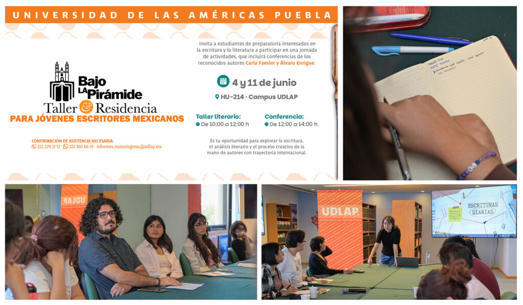 Del 2 al 13 de junio, la Universidad de las Américas Puebla (UDLAP) reunirá a un grupo de diez escritores jóvenes mexicanos sobresalientes en el panorama actual, que fueron seleccionados entre más de 230 postulaciones para formar parte de la segunda edición del Taller-Residencia para Jóvenes Escritores Mexicanos Bajo la pirámide, 2025, quienes trabajarán en un espacio único bajo la guía de Carla Faesler y Álvaro Enrigue, autores con una amplia y consolidada trayectoria, y que fungirán como talleristas y tutores.