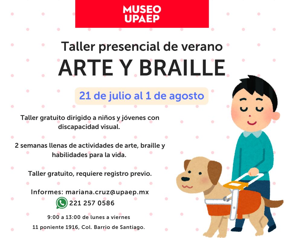 Previa inscripción Enviar un mensaje de WhatsApp al número 221 257 0586, o al correo electrónico mariana.cruz@upaep.mx indicando que desean inscribirse a Arte y Braille.
