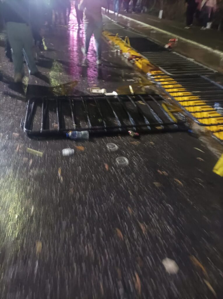 La multitud en la Feria de Puebla 2025 empezó a empujarse, hasta que se rompió el cerco de seguridad y tiraron las vallas metálicas que delimitaban los accesos. Cuando esto ocurrió la estampida se desató por lo que algunos fans lograron llegar a la zona VIP, la más restringida.