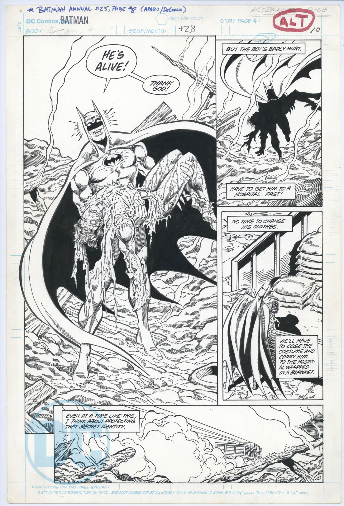 El año pasado, el portal Polygon tuvo acceso a algunos apartes de esa versión de la mano de DC Comics y los publicó esta semana, a puertas del 80.° aniversario de la aparición del Chico Maravilla en los cómics, el próximo abril. Se trata de la imagen escaneada de una de las páginas no publicadas en la que Bruce Wayne sostiene a Robin en sus brazos y asegura que sigue con vida, aunque «malherido».