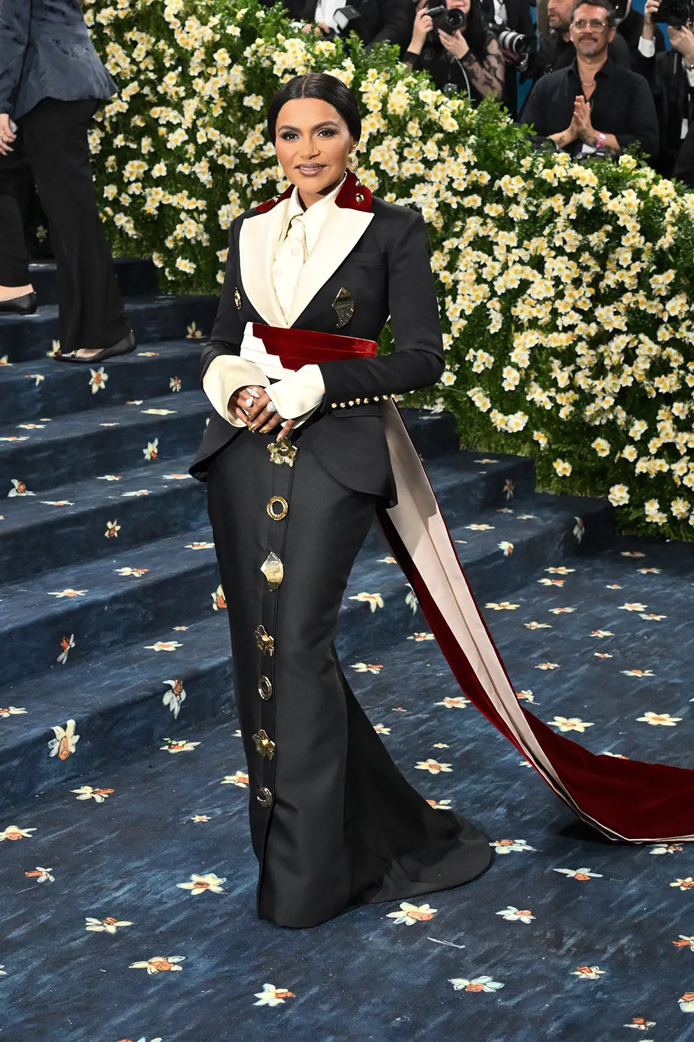 Fue la primera Met Gala de Tyler Perry, quien arribó en un Gray a su medida, además se mostró encantado de adoptar el código de vestimenta centrado en el dandismo, eligiendo una capa de seda con bordados de cristal sobre un esmoquin, ambos de Brandon Gray. El cineasta complementó su look con un reloj Richard Mille, gemelos de Jason of Beverly Hills, joyas de Sebastian Jaramillo y zapatos de Christian Louboutin.