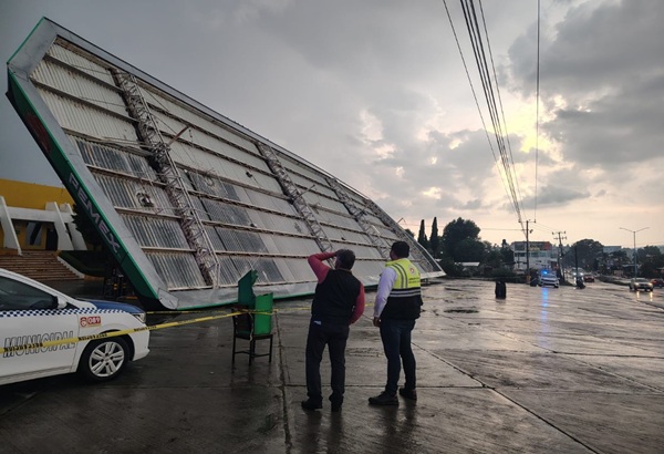 La Coordinación Estatal de Protección Civil (CEPC) informa que, como resultado de las lluvias acompañadas de granizo y de fuertes vientos registradas durante la tarde de este miércoles, se reportó el colapso de la techumbre de una gasolinera ubicada en la Colonia La Aurora, sobre la carretera federal Tlaxcala-Puebla, en el municipio de Tepeyanco.