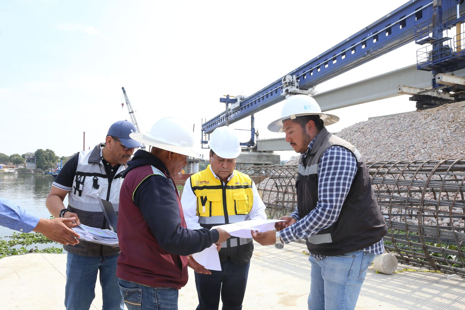 Con personal y maquinaria especializada, el Gobierno del Estado de Puebla a cargo del mandatario Alejandro Armenta, avanza en la colocación de trabes que conformarán la estructura del puente vehicular que sustituirá a La Panga y que conectará a 7 municipios de la región de Valsequillo.
