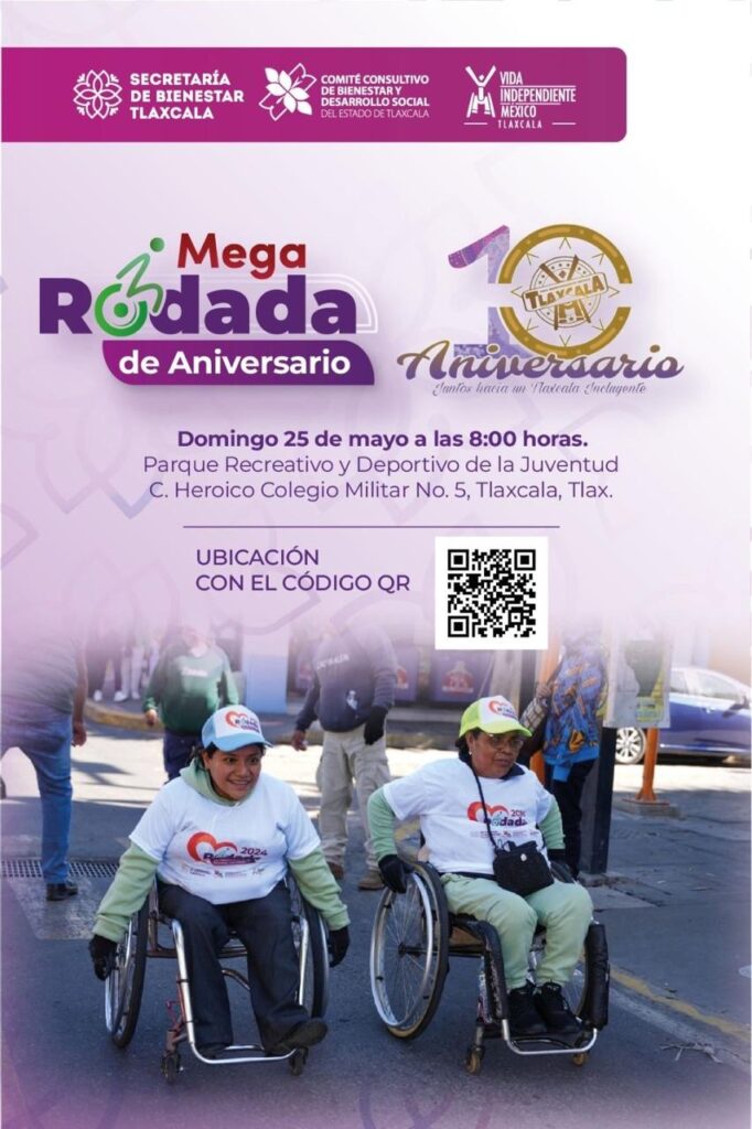 Cabe señalar que la “Mega Rodada” se llevará a cabo el próximo domingo 25 de mayo, a partir de las 8:00 horas. El punto de salida será el Parque de la Juventud, ubicado en calle Heroico Colegio Militar, número 5, en la capital del estado. Los contingentes de personas en sillas de ruedas recorrerán las principales calles del centro histórico de Tlaxcala para difundir un mensaje de inclusión y solidaridad hacia las personas con discapacidad.