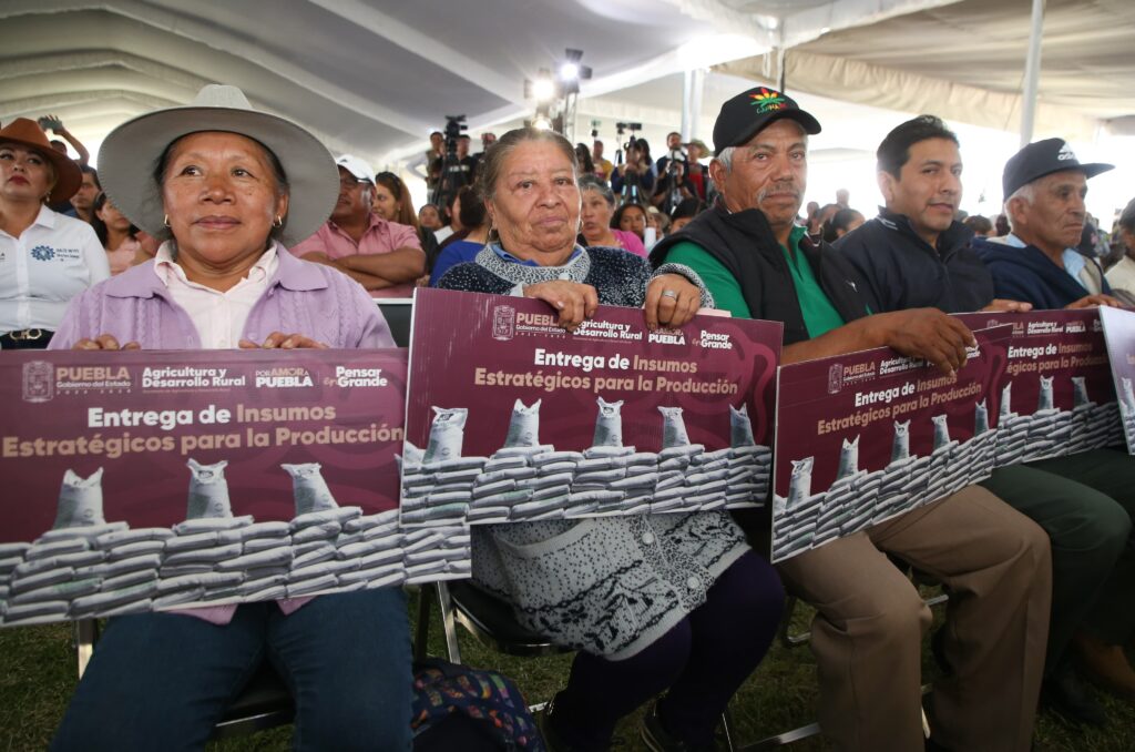 El gobernador de Puebla también encabezó la entrega de mil 157 insumos para el campo, con una inversión de 11 millones de pesos, así como de 53 cheques para proyectos de Obra Comunitaria, por 11.7 millones de pesos. Señaló que la presidenta de México, Claudia Sheinbaum impulsa la soberanía alimentaria ya que todo tiene que ver con la seguridad y de lograr que los sueños de las y los campesinos se materialicen.