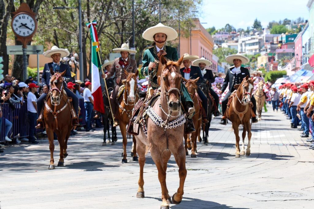 Posteriormente, dio inicio el desfile cívico-militar por las principales calles de la capital, con la participación de 687 elementos del Ejército, Fuerza Aérea y Guardia Nacional, con 59 vehículos, tres ambulancias, una motocicleta y tres activos biológicos; por parte de la Secretaría de Seguridad Ciudadana y de Marina, 422 elementos, 49 vehículos, nueve sensores caninos, siete motos, seis cuatrimotos, tres motobombas, dos ambulancias, un dron, un antidron, un helicóptero y una ambulancia.