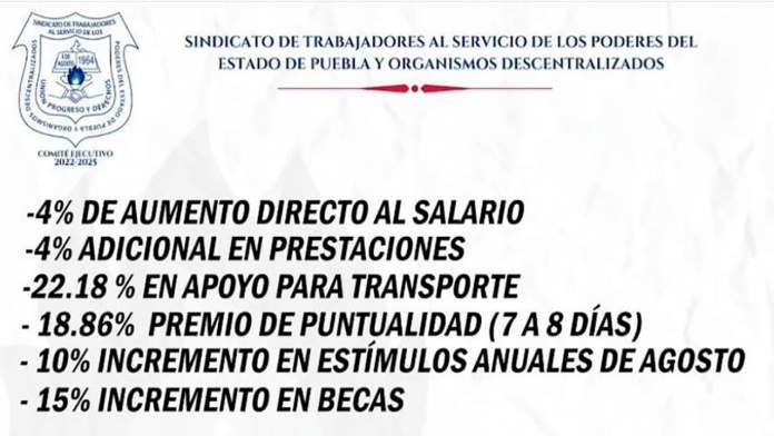 Así lo informó Jhovani Oliver Gallo, secretario general del Sindicato de Trabajadores al Servicio de los Poderes del Estado de Puebla y Organismos Descentralizados (Stspepyod), al dar a conocer los resultados de la revisión salarial 2025.
