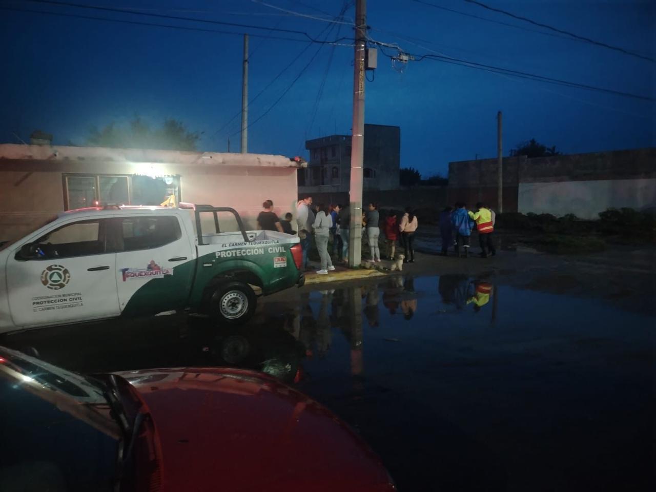 El personal se abocó a valorar daños y detectar posibles riesgos adicionales derivados de la introducción de aguas negras en al menos ocho viviendas en Tequexquitla, producto del colapso del drenaje por acumulación de agua pluvial.