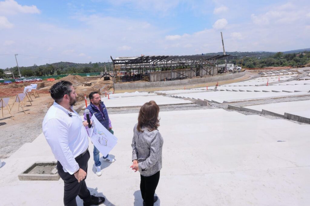 Aquí será el escenario, las gradas para siete mil personas; ustedes irán viendo, todas las veces que vengamos, el avance de este proyecto tan importante para Tlaxcala. Aquí Lalo y Vicente Mazorra son las personas que me acompañan, quienes supervisan la obra para que tenga todas las condiciones y, sobre todo, que este proyectada para que las familias de Tlaxcala tengan un lugar hermoso para disfrutar”, subrayó la mandataria estatal.