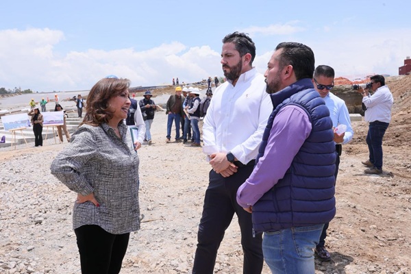 Acompañada por el secretario de Infraestructura (SI), Eduardo Tapia Hernández, y el director de Obras de la dependencia estatal, Vicente Mazorra, la titular del Ejecutivo explicó que la primera etapa, que inició con la colocación de la primera piedra el pasado 10 de febrero de 2025 con una inversión de 156.6 millones de pesos, registra un avance del 43 por ciento.