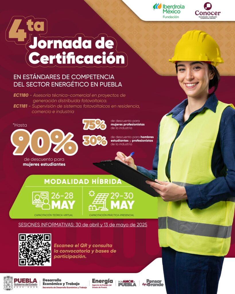 Esta convocatoria, emitida por la Agencia de Energía del Estado de Puebla, y en conjunto con Fundación Iberdrola México, busca ampliar las oportunidades de formación técnica especializada en energías limpias.