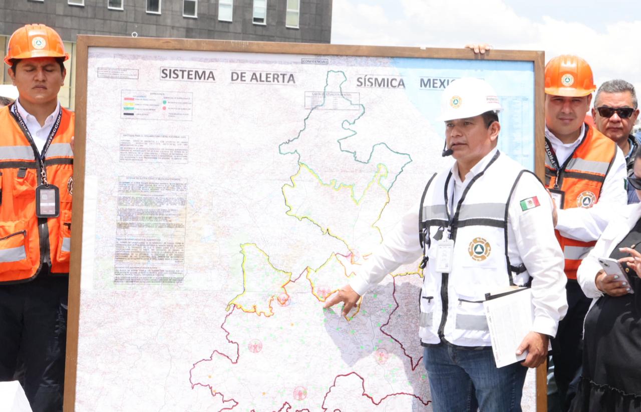 El coordinador estatal de Protección Civil, coronel Bernabé López Santos, entregó el parte oficial al mandatario estatal, destacó que el simulacro en Puebla se ejecutó bajo la hipótesis de un sismo de magnitud 8.1, con epicentro en Lázaro Cárdenas, Michoacán. Detalló que se implementaron protocolos de seguridad como la inhabilitación de elevadores y escaleras eléctricas, revisión de instalaciones eléctricas y estructurales, y el acompañamiento de brigadas multifuncionales en los procesos de evacuación.
