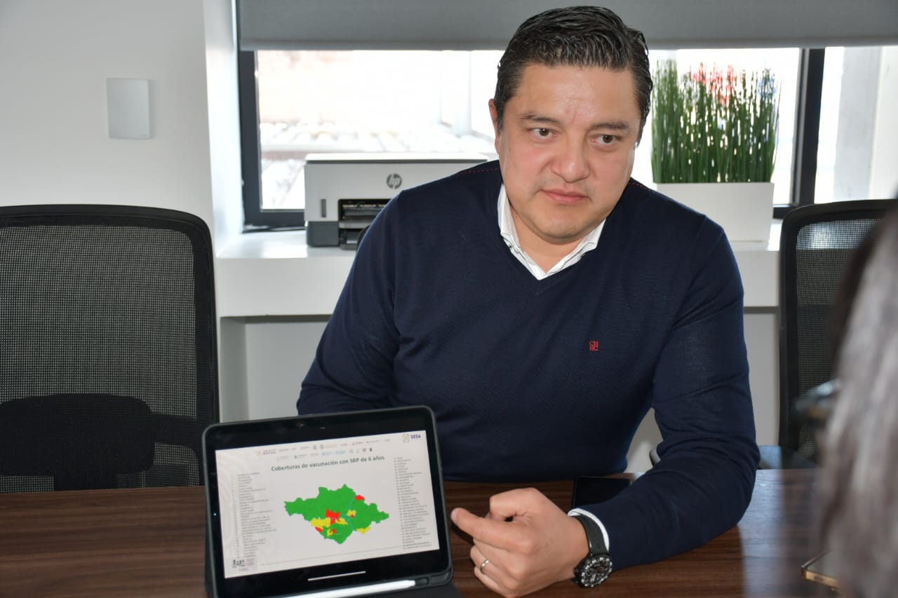 El secretario de Salud, Rigoberto Zamudio Meneses, informó que Tlaxcala cuenta con 21 mil dosis de vacuna triple viral (SRP) y, a partir del miércoles 30 de julio, personal médico y de enfermería saldrá casa por casa a vacunar a infantes de los municipios de: